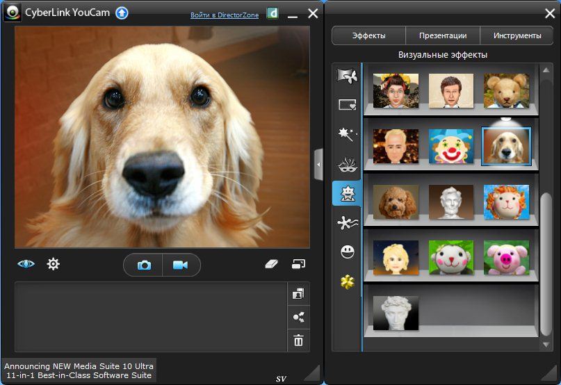 | Cyberlink YouCam – обычная программка для сотворения собственных собственных аватар, видеообразов, клипов с помощью web-камеры. YouCam незаменима для онлайновых видеочатов и включает поддержку фаворитных решений Yahoo! Программа позволяет добавить динамические эффекты к вашей сетевой видеокамере. Веселитесь во время видео-чатов, добавляя emotion effects. Применяйте эффекты сразу же во время захвата видео и фото. Загружайте ваши клипы прямо в YouTube. Сразу же отправляйте свои фото и видео друзьям по электронной почте. Двухрежимный пользовательский интерфейс упрощает использование программки CyberLink YouCam. В режиме моментального обмена сообщениями можно участвовать в многопользовательском видеосеансе с друзьями с помощью веб-камер, применяя секундные эффекты в режиме настоящего времени. Секундные эффекты разрешают добавлять рамки, фильтры, искажения и эмоциональные эффекты к видеоизображению с веб-камеры. Это позволяет дополнить видео забавными и креативными видеоэффектами. Новейшие способности: Записывайте HD video в H.264 формате Применяйте HD эффекты Запись рабочего стола в HD Запись HD Video & Snapshot Face Login to Windows - запоминает лицо для входа под своим логином в Windows Face Login to websites - - запоминает лицо для входа под своим логином на различные веб-веб-сайты Face-out (Deluxe) - определяет, когда вы отходите от компьютера, и блокирует его. Создавайте видео-презентации Поддержка ввода видео из 2-ух источников Создание аватаров Эффект частиц с определением изображения Год выпуска: 2012 Разработчик: CyberLink Платформа: Win All Язык интерфейса: MLT / Rus Лекарство: yes Размер: 342 MB Формат: rar Доп. информация: Скачать бесплатно CyberLink YouCam Deluxe 5.0.2219 342 MB | |